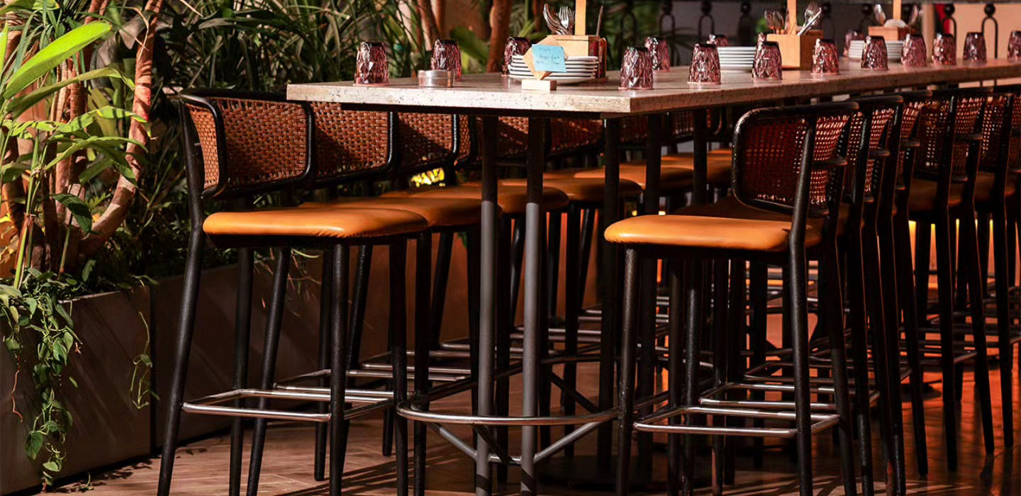 We custom-built everything: tall stools with powder-coated finishes, soft-grain tables with built-in joinery lines, cozy settees with warm-toned fabrics that matched golden-hour lighting. No repetition, no templates. Just furniture that fit into the flow like it was always there.
